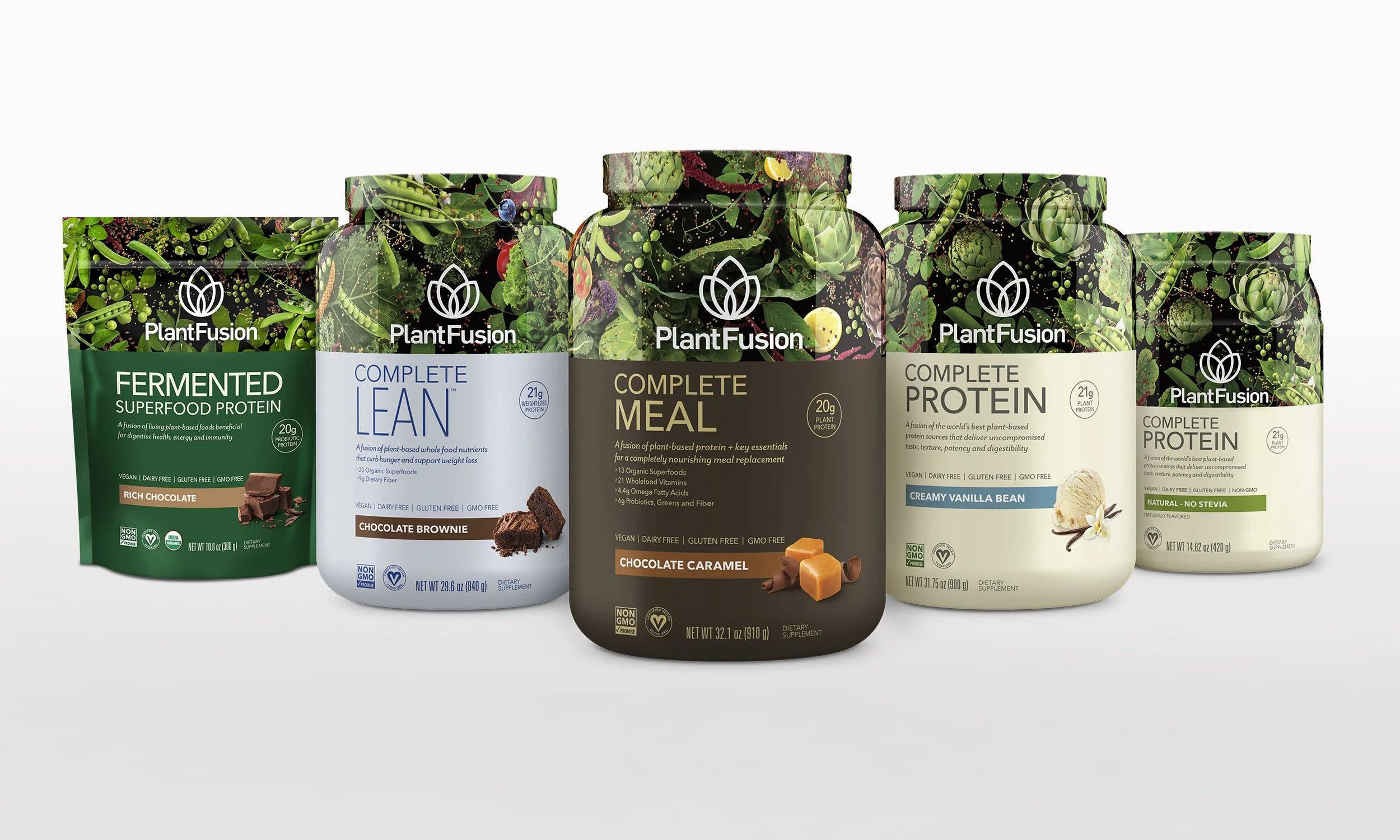PlantFusion is 100% plant-based and made from identifiable real food ingredients. In a saturated market that closely mimics a clinical pharmaceutical look and feel, the brand was looking to stand out and speak to its positioning – Complete Nourishment from Real Plants.